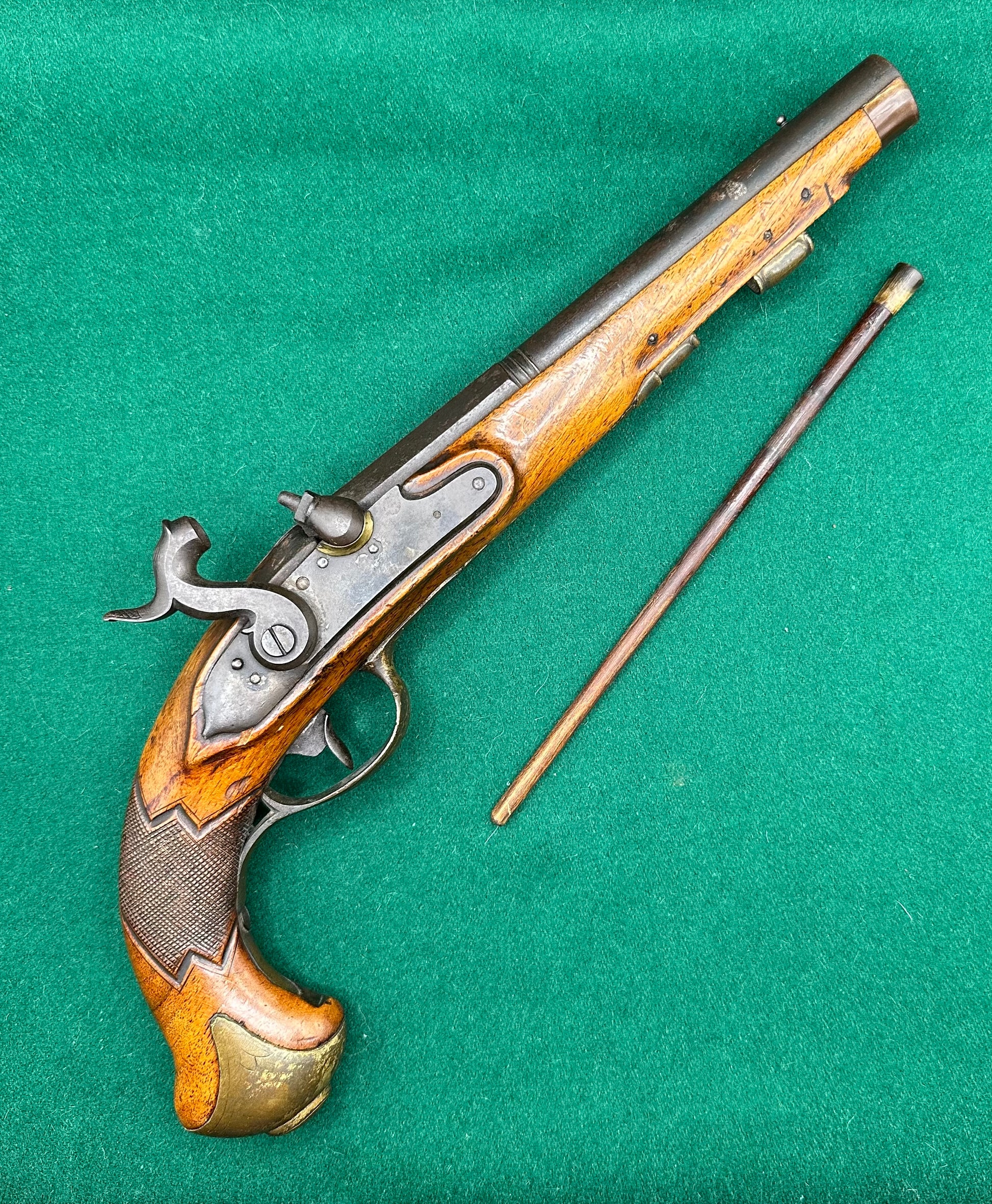 Both have horn tipped wooden ramrods that, given their colouration, look original.
