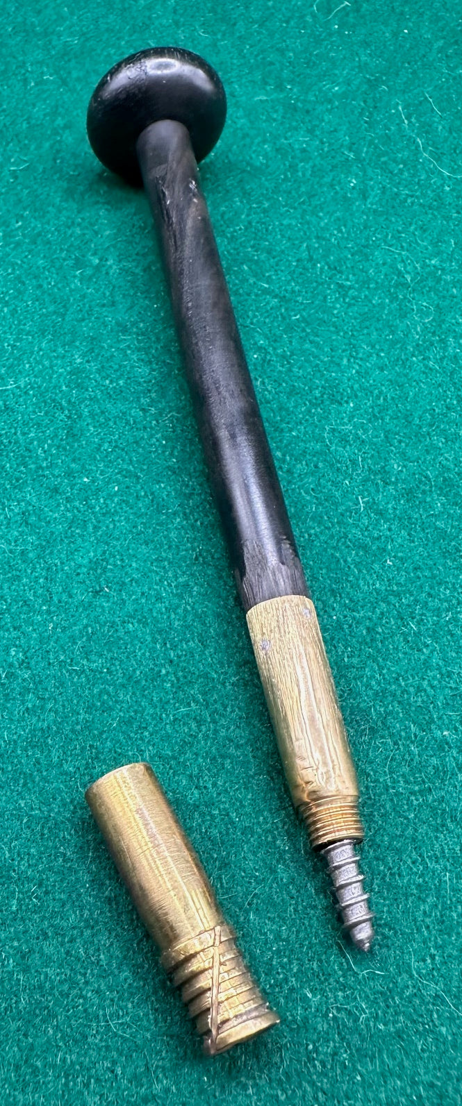 A beautiful brass framed 7mm pocket revolver with gold (yellow metal) inlay to the blued cylinder and barrel, along with a full set of accessories in its wooden, burgundy velvet and leather? fitted case.