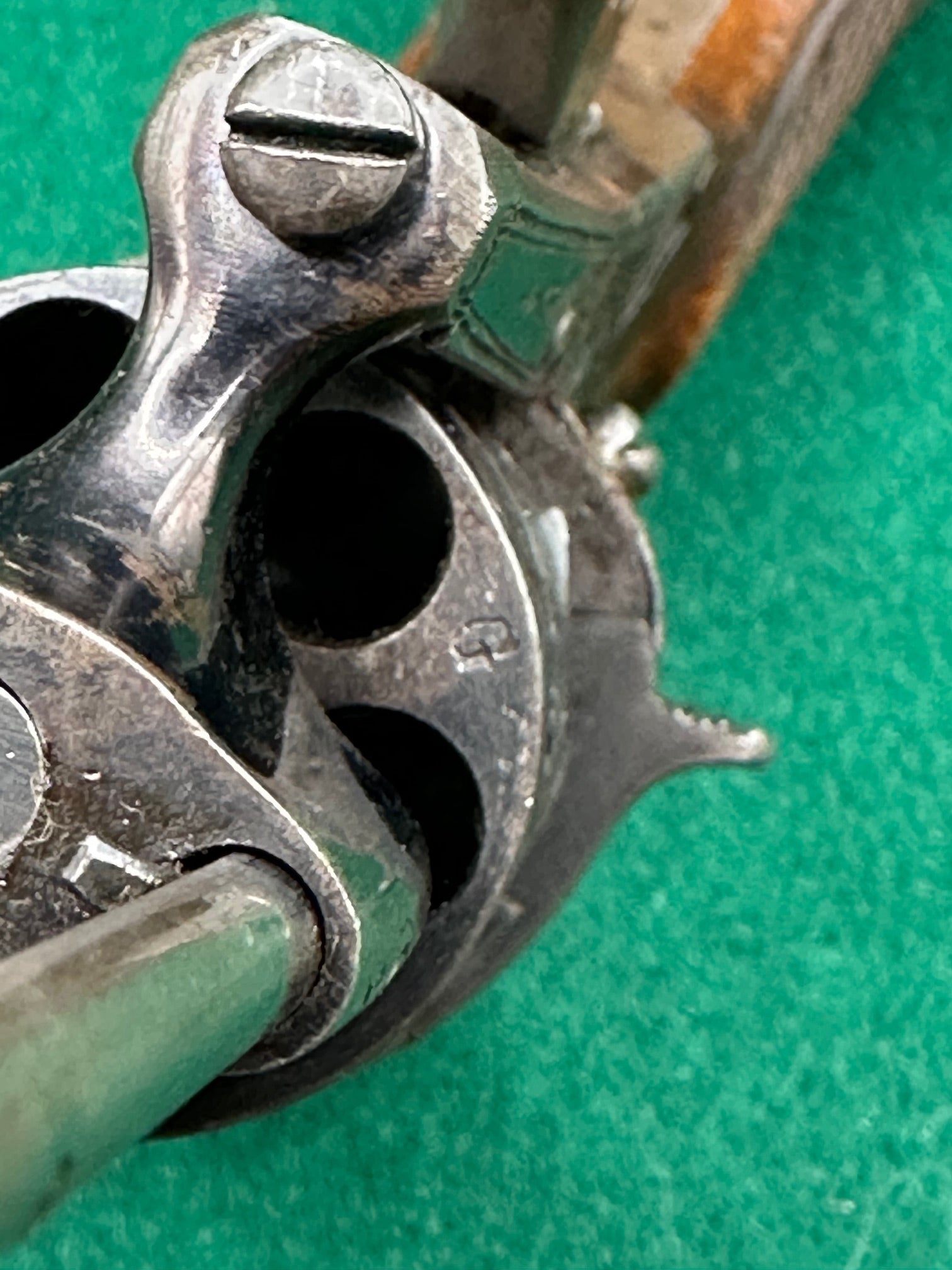 The cylinder is also marked with a 3 and O R, (this might be C R, very difficult to tell), and once again I cannot find a maker with this mark.