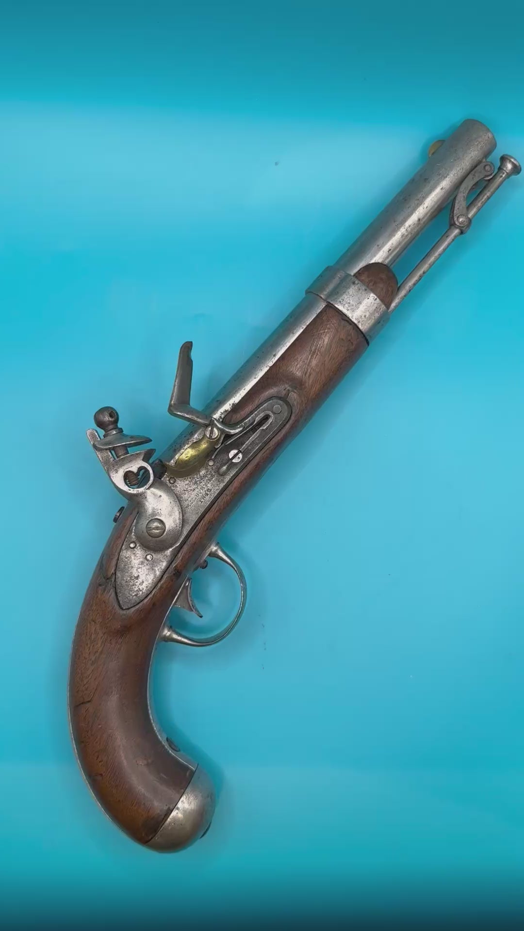 This antique pistol is considered obsolete and non functioning, and is sold as a collectable ornamental item. This product is available for purchase in the UK without a license
