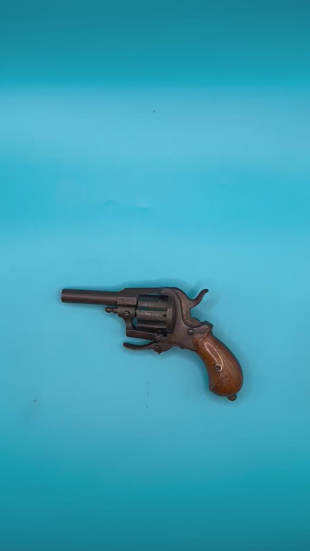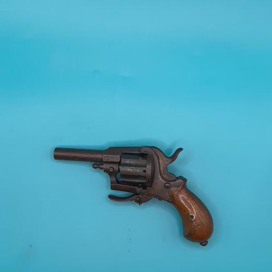 A compact and very pleasantly shaped pinfire revolver with a very sturdy closed frame design.