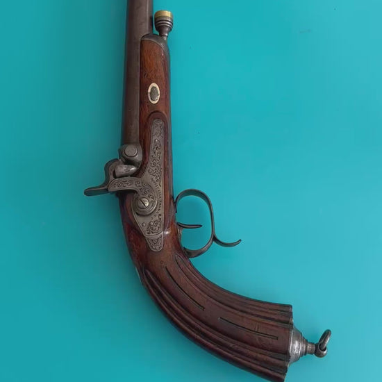Mid 19th Century Large Calibre Percussion Cap Officers Pistol Signed By The Quality Maker J B Ronge Liege