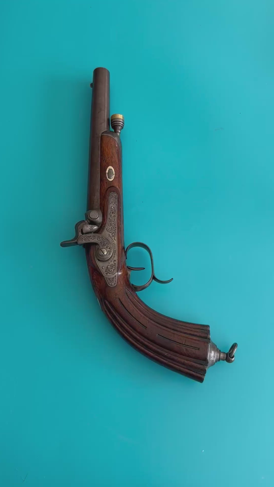 This antique pistol is considered obsolete and non functioning, and is sold as a collectable, ornamental item. This product is available for purchase in the UK without a license.
