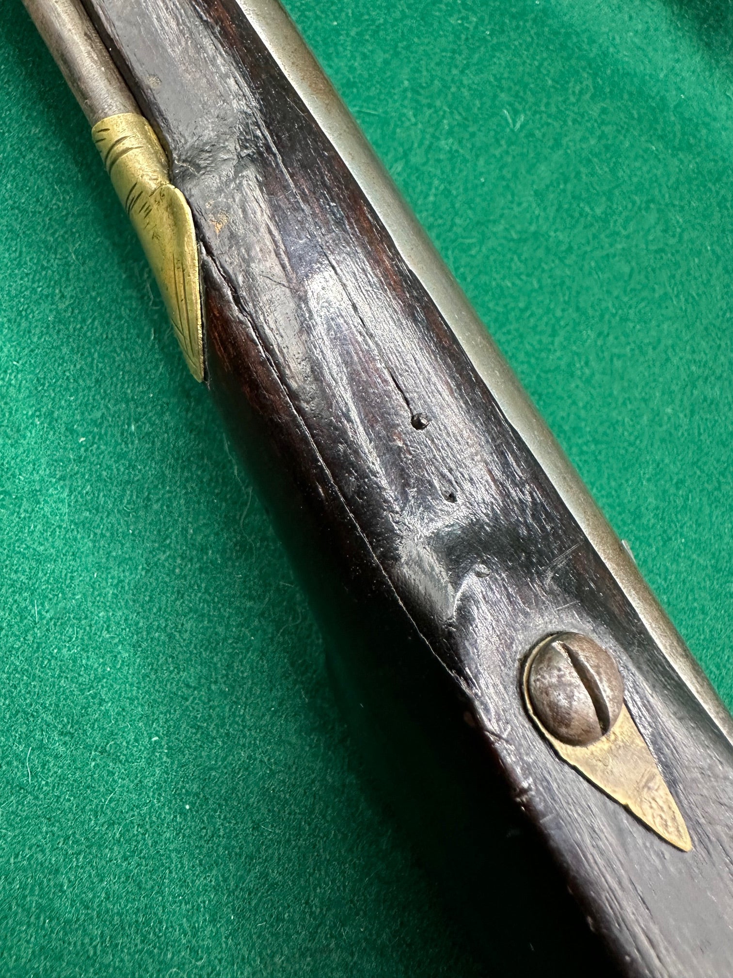 Overall the metalwork is in good condition in bright steel with a little staining and pitting on the barrel at the breech. The brasswork has a nice aged patina.