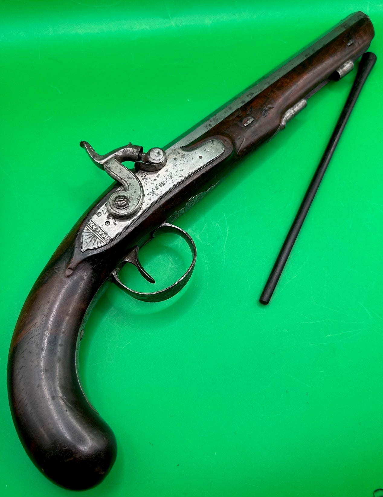 Early 19th Century Full Stocked Officers, Dueling or Holster Pistol signed Patrick, Liverpool