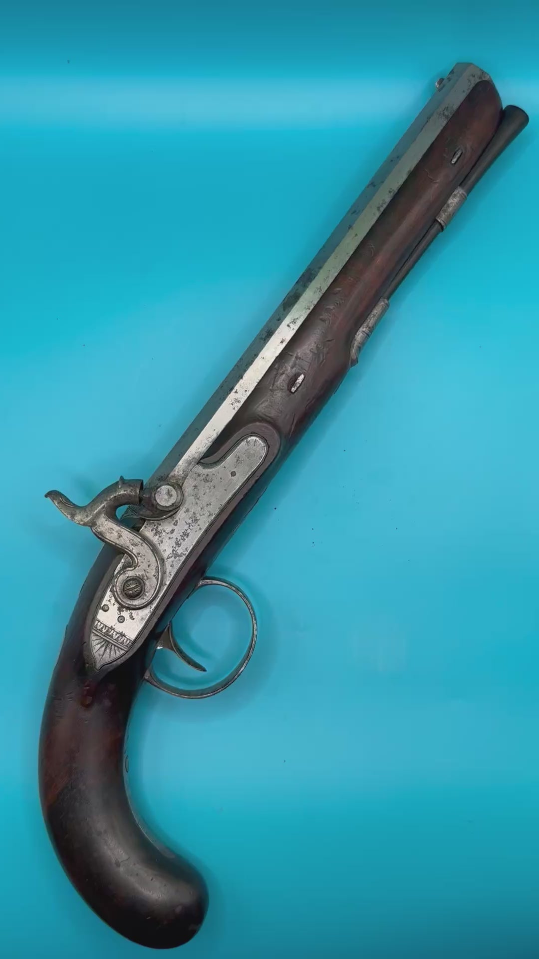 This antique pistol is considered obsolete and non functioning, and is sold as a collectable ornamental item. This product is available for purchase in the UK without a license.