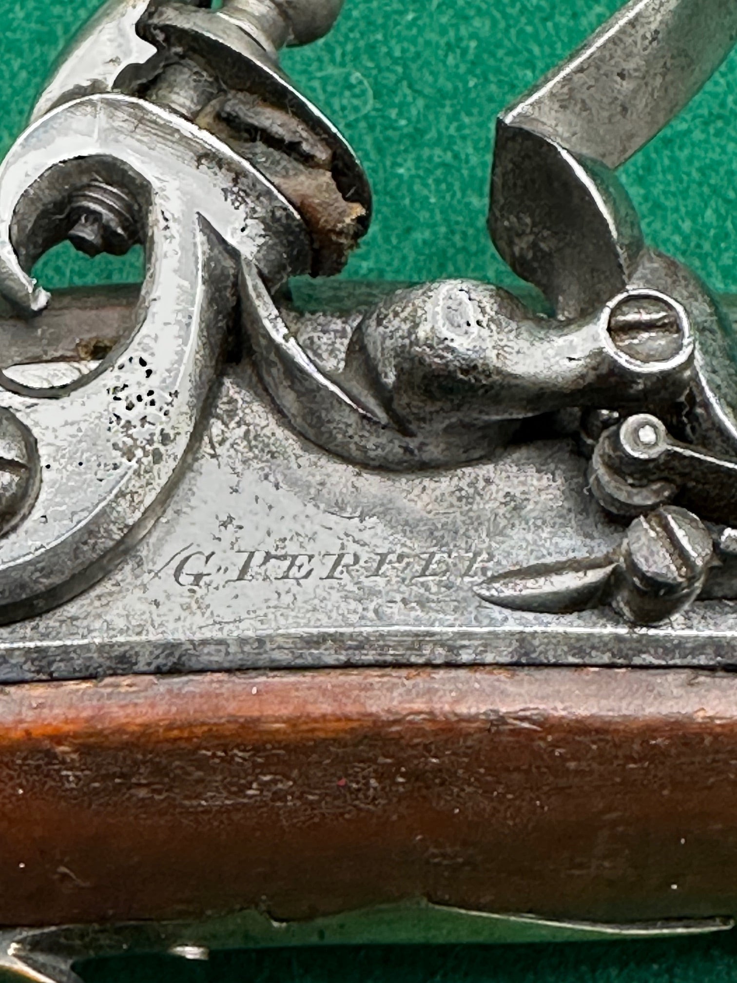 The stepped lock is signed G. Pepper and carries quality features, such as a roller frizen spring and a semi rainproof pan.