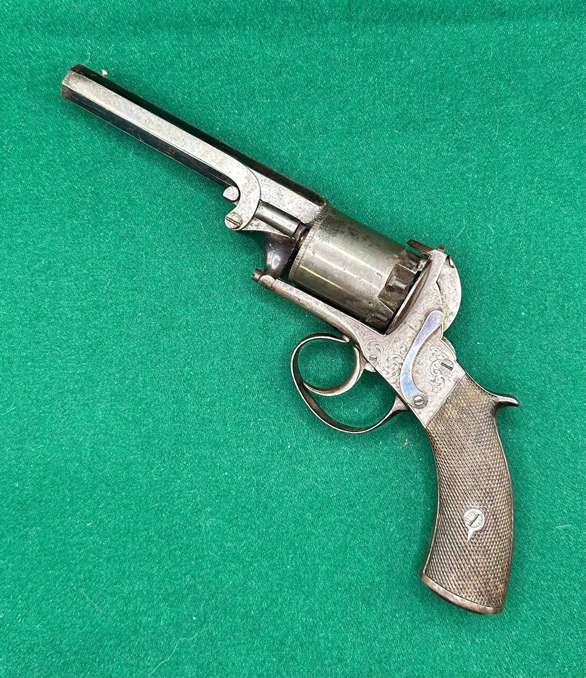 Quite a large example of this very English percussion cap revolver dating from around the 1850's to 1860's.