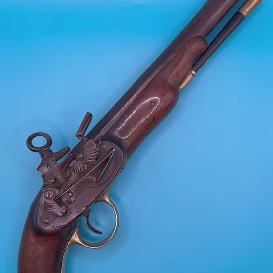 The buttcap, trigger guard and ramrod pipe are of brass and its ebonised ramrod is also tipped with brass.