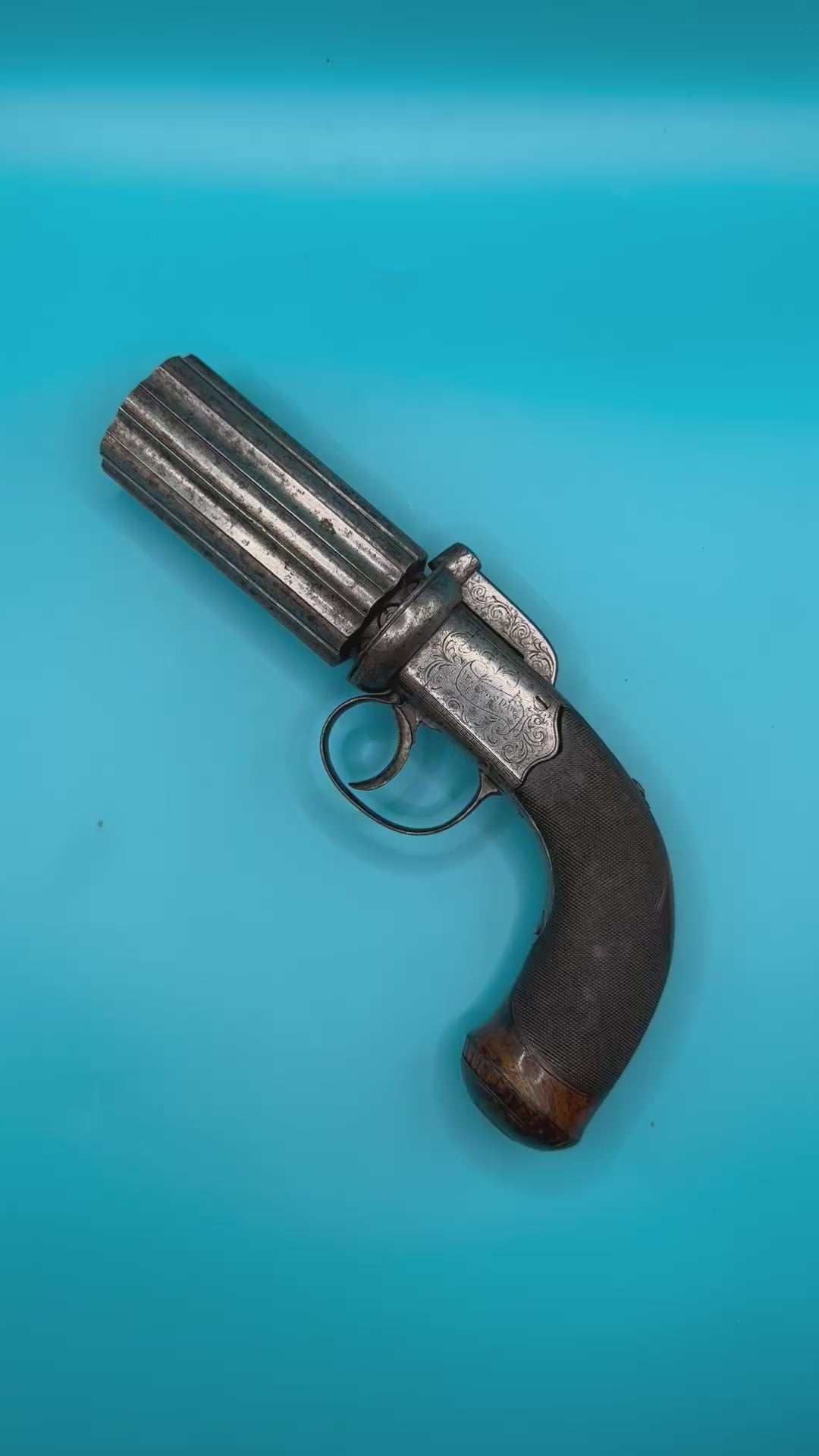 A scarce item this. A beast of an 8 shot 0.34 calibre percussion cap pepperbox revolver.