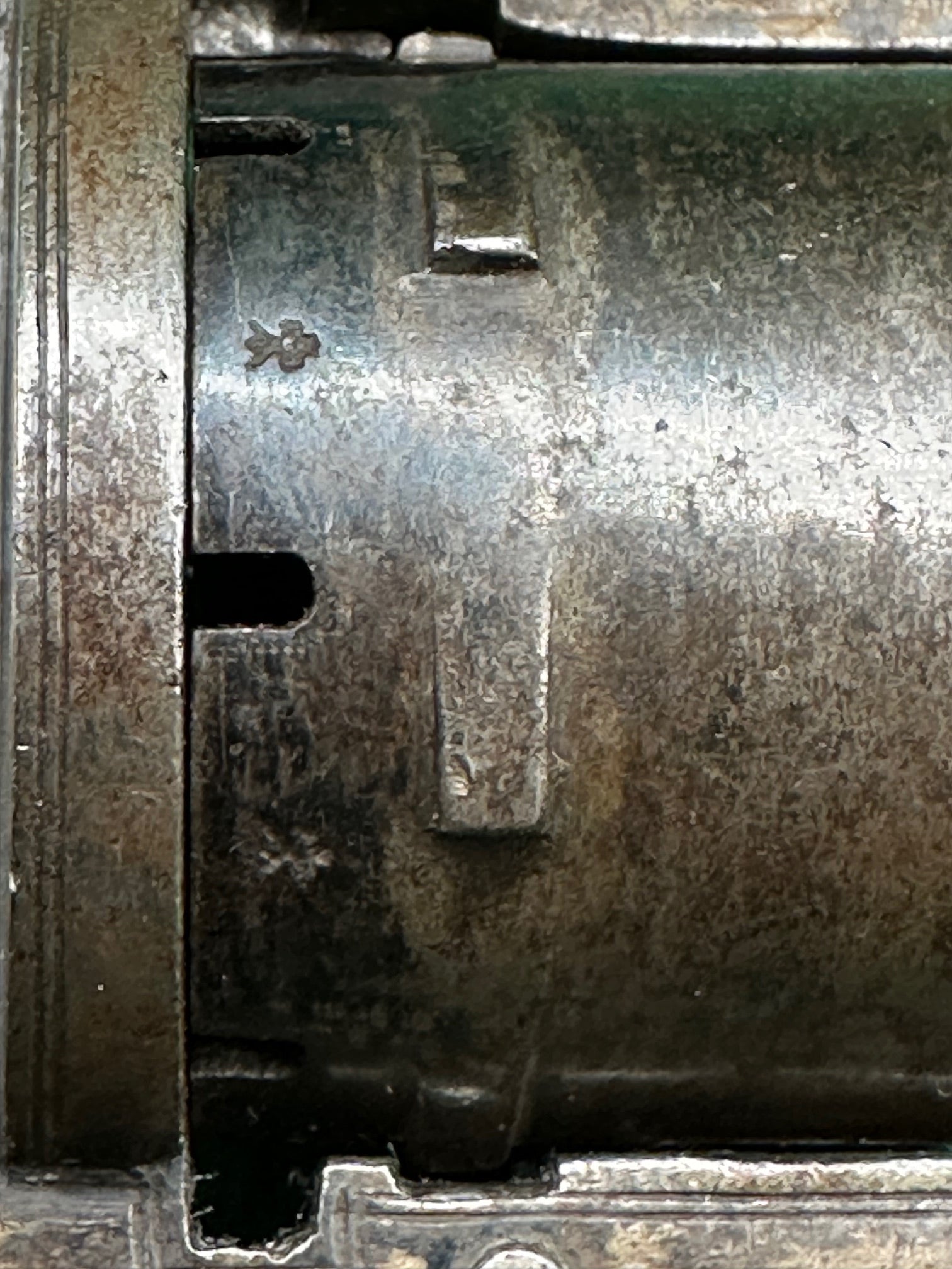 On the right of the frame is the Crown over FA, which I believe to be the stamp for Alexandre Fagnus, and there appears to be a serial number 154 on the barrel just in front of the cylinder.