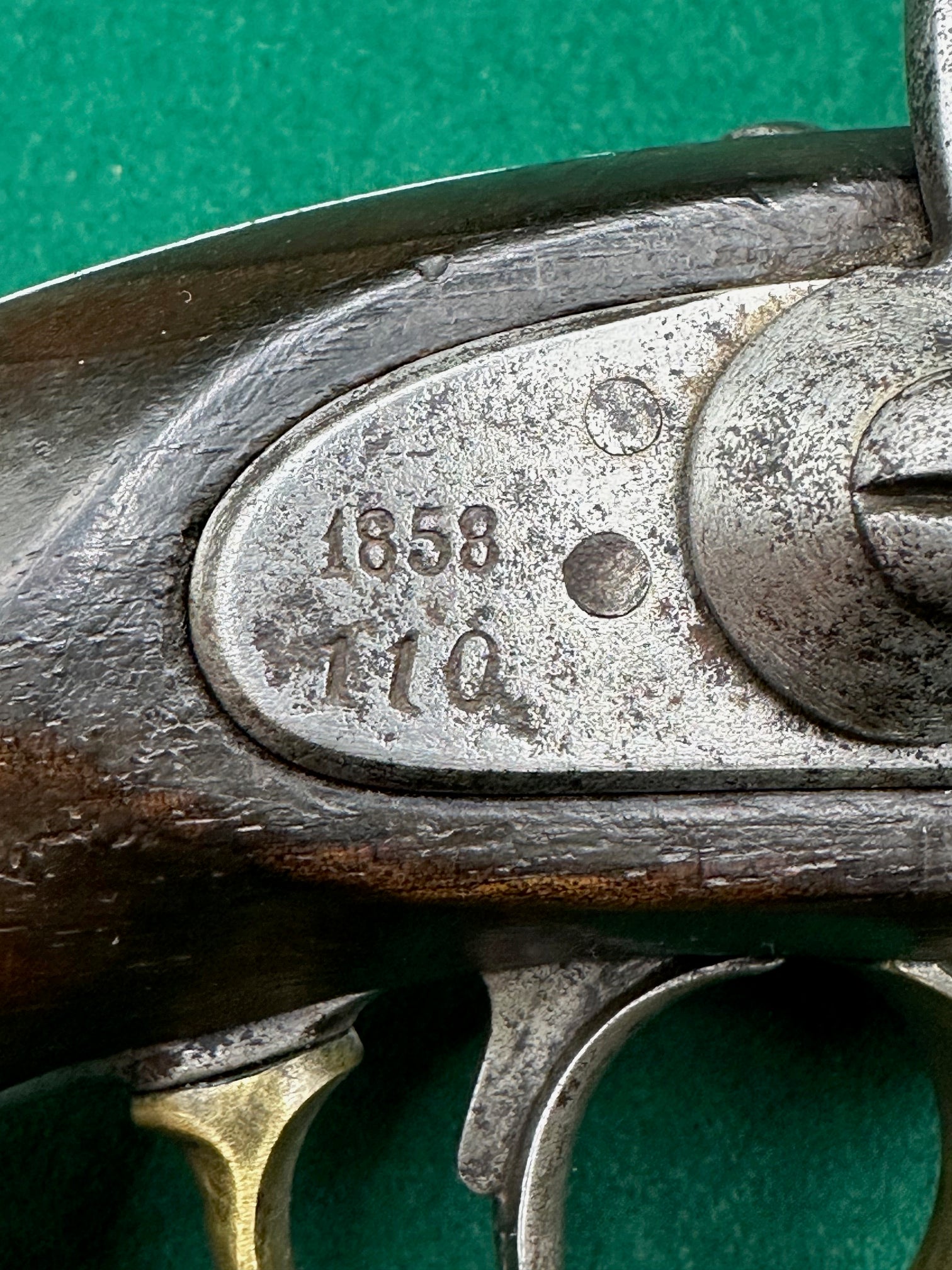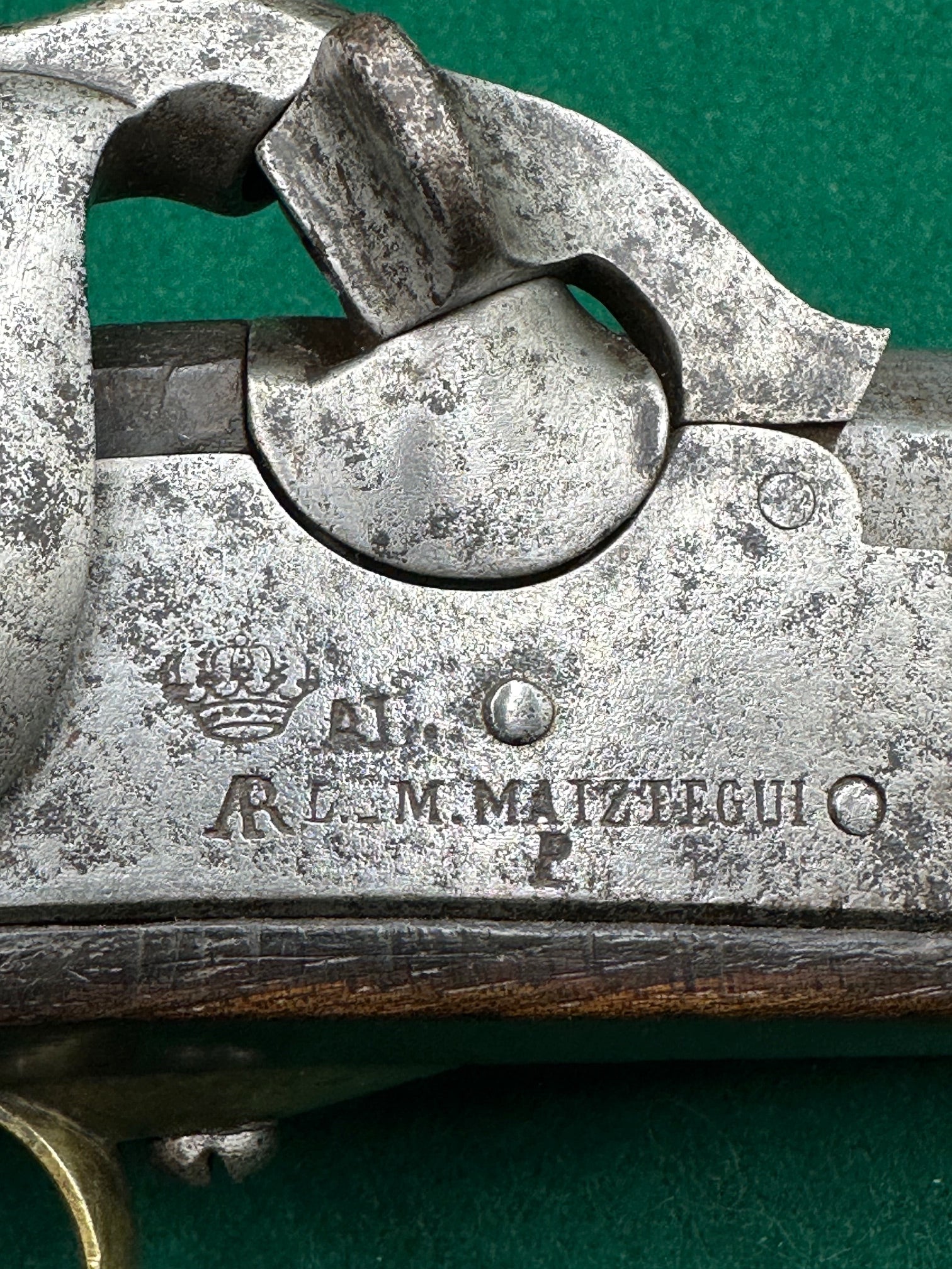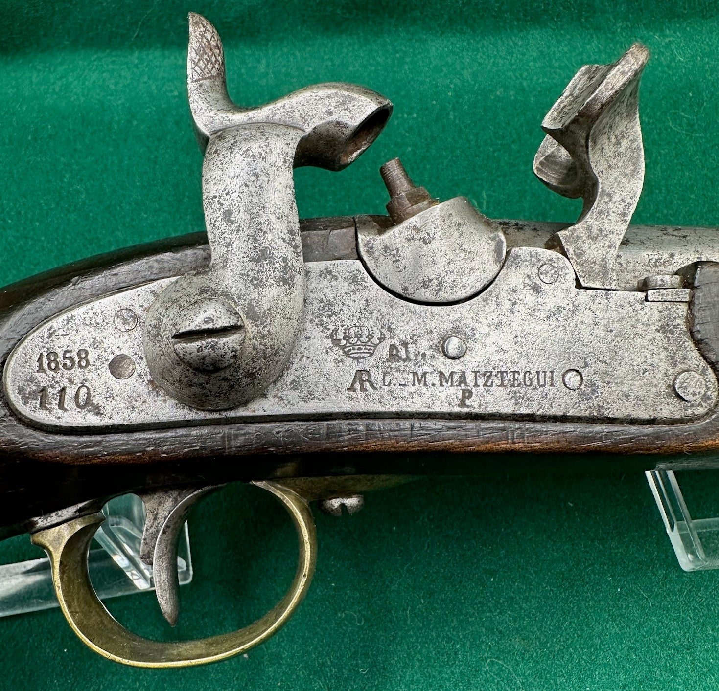 The lock is also stamped 1858 and 110, plus the Crowned AR, the manufacturer M. Maiztegui and other marks, which I assume are inspection stamps.