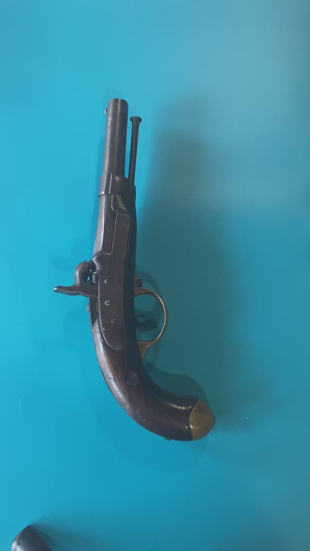 This antique pistol is considered obsolete and non functioning, and is sold as a collectable item. This product is available for purchase in the UK without a license